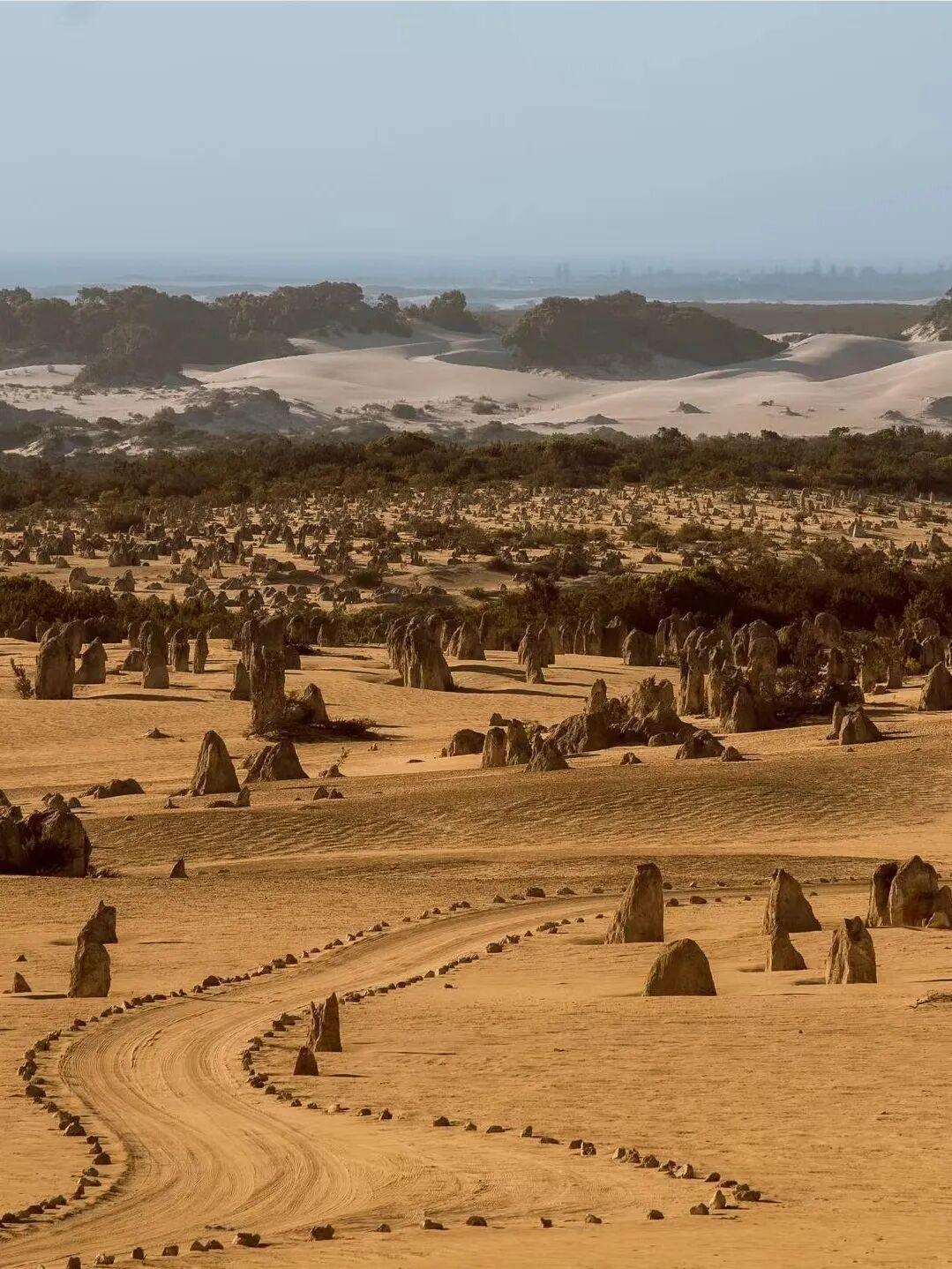 尖峰石阵位于珀斯以北260公里处,是南邦国家公园的一部分,也是西澳大利亚州知名度最高的景点之一。这里的石柱大小不一,在沙漠景观中看上去很像古战场的布阵,因此被称为"尖峰石阵"。