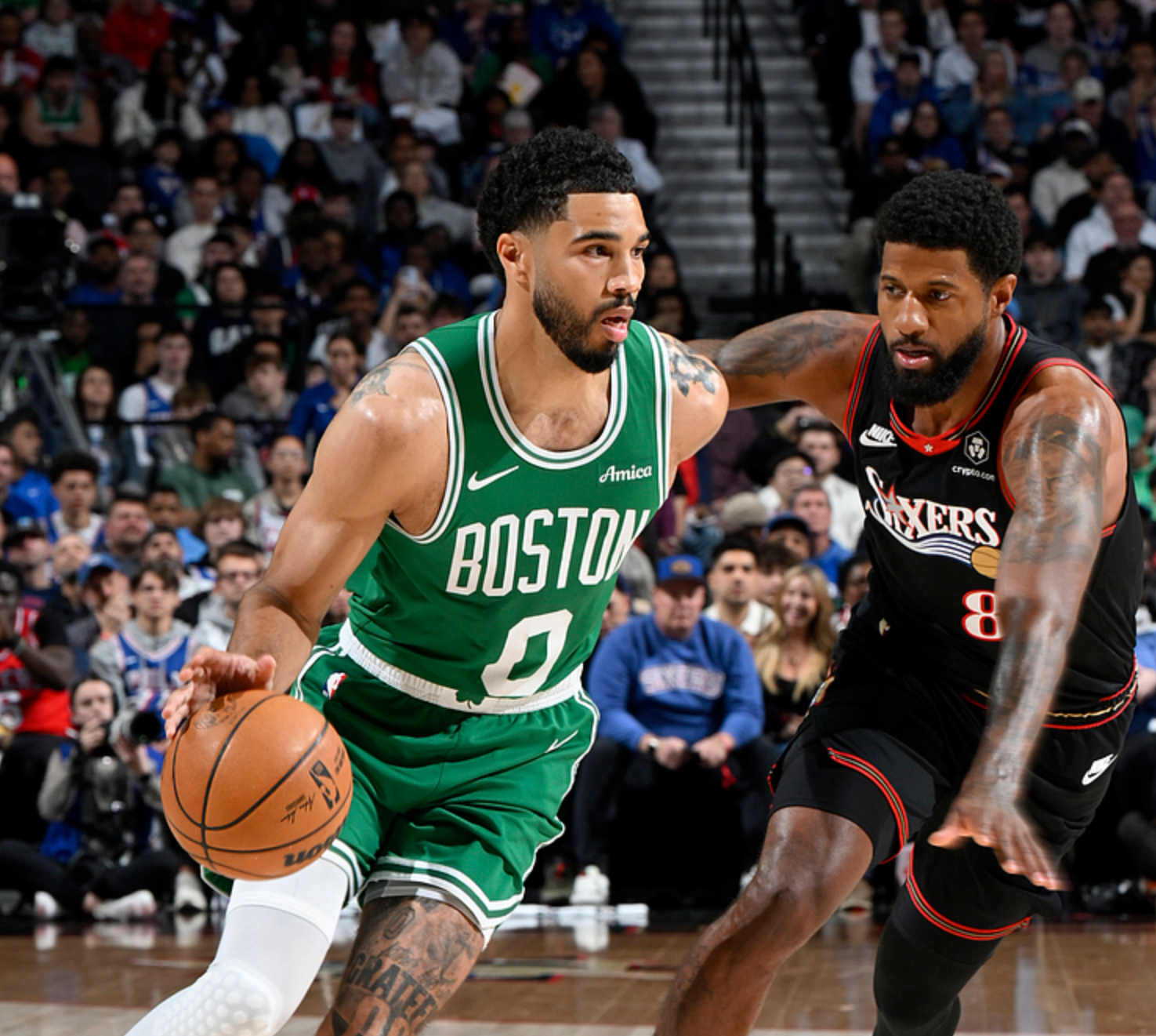 普里查德半场12中7(三分8中4)得到18分4板1助,布朗9中3(三分5中2)得到8分5板,塔图姆8中1得到5分5板4助。76人方面恩比德半场10中3得到12分5板3助1帽,马克西3中2(三分1中1)得到7分1板2助,乔治7中2得到6分3板。