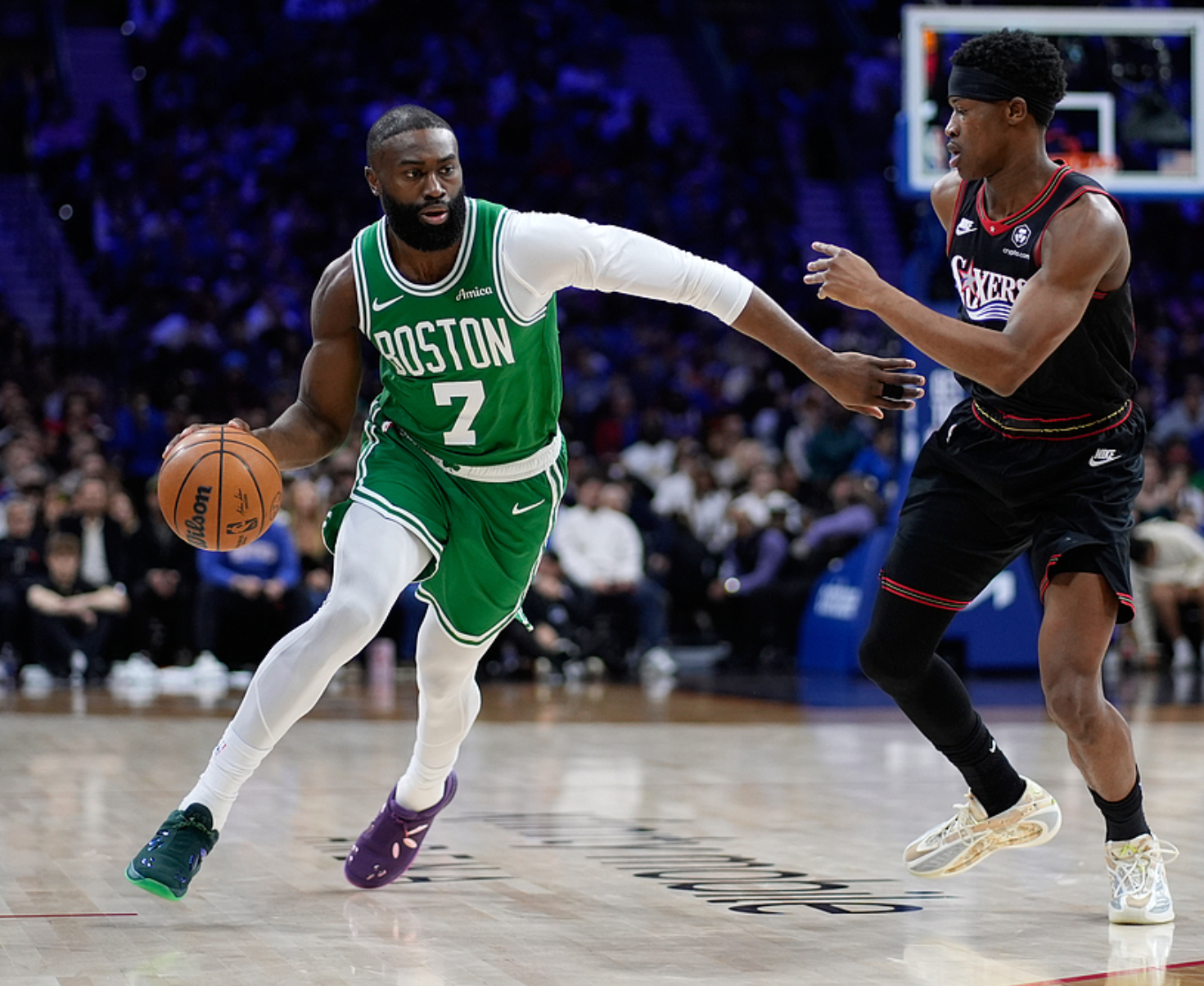 普里查德半场12中7(三分8中4)得到18分4板1助,布朗9中3(三分5中2)得到8分5板,塔图姆8中1得到5分5板4助。76人方面恩比德半场10中3得到12分5板3助1帽,马克西3中2(三分1中1)得到7分1板2助,乔治7中2得到6分3板。